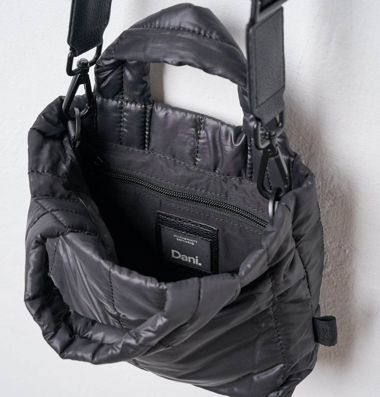 תיק Quilt Bag בגרסת המיני עשוי מבד קווילט התפור בטכניקה ייחודית. לתיק שתי ידיות נשיאה ורצועה ארוכה מתכווננת וניתנת להסרה, המאפשרת שימוש על הצד או כקרוס. פנימית חלוקתו לתא מרכזי אחד עם כיס צד בסגירת רוכסן.