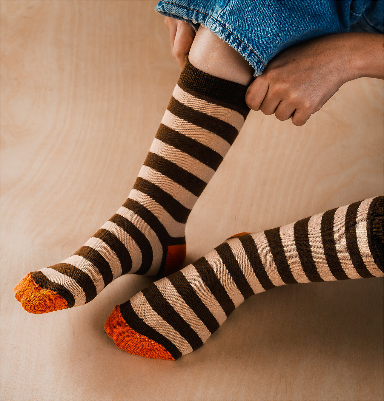 פסים מוקה וקרם עם נגיעות כתום